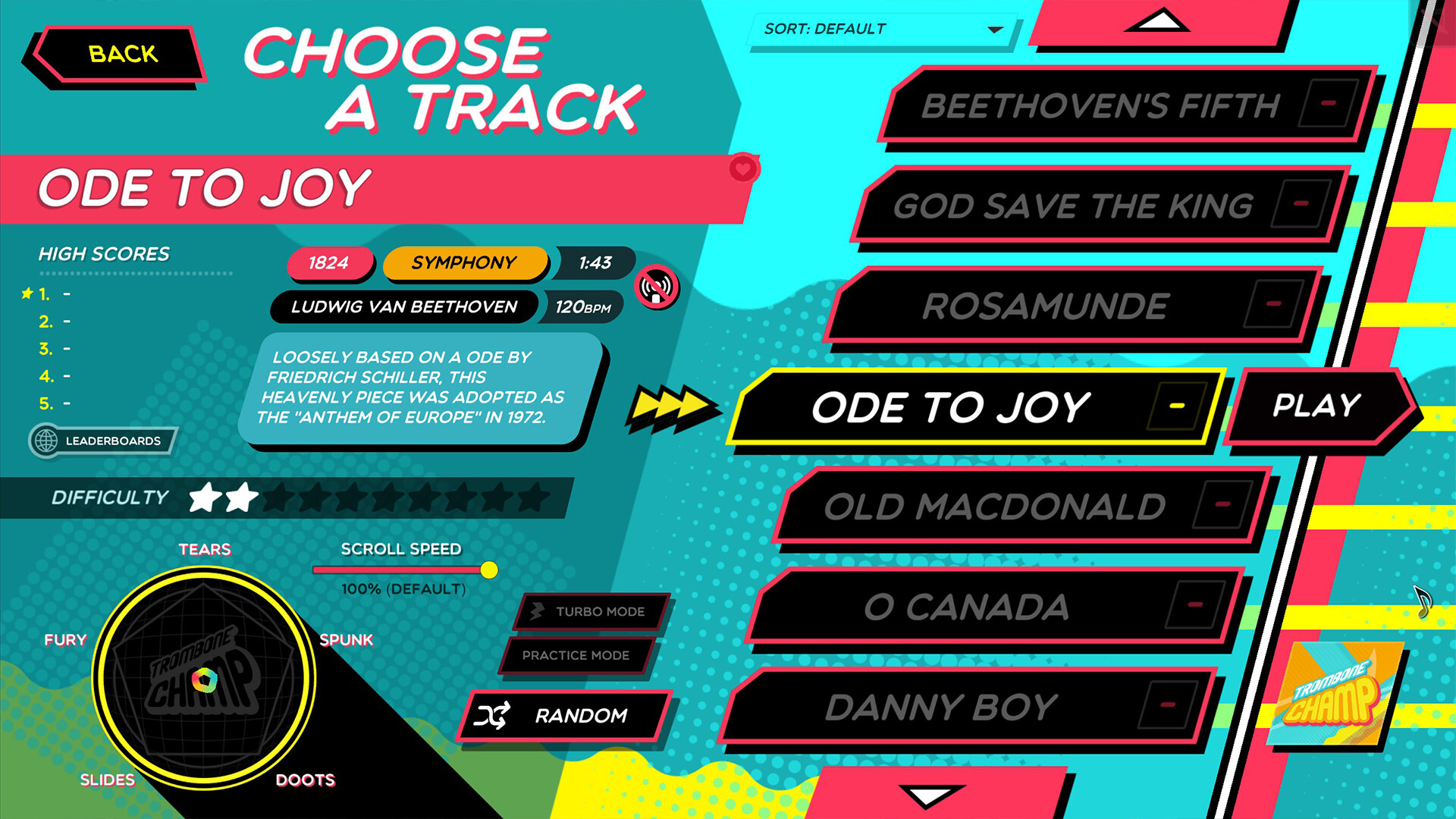 Trombone Champ is the world's first trombone-based rhythm music game. Unlike most music games, you can freely play any note at any time. You're not just following along with the music, you're actually playing the music! Play over 70 songs, collect all 50 Tromboner Cards, and discover the secrets of the Trombiverse!